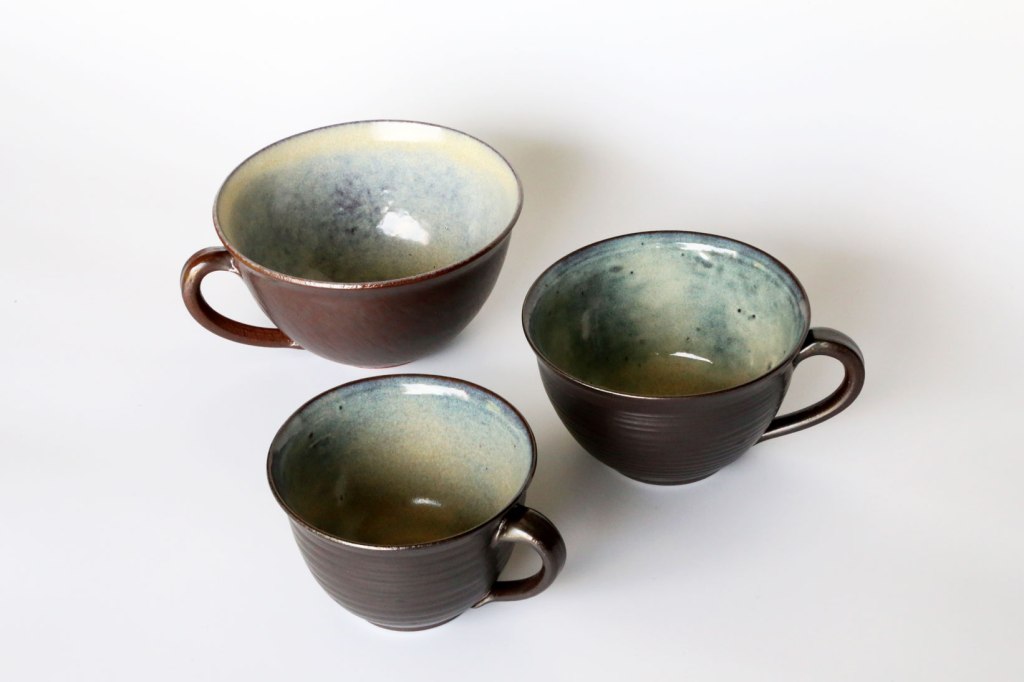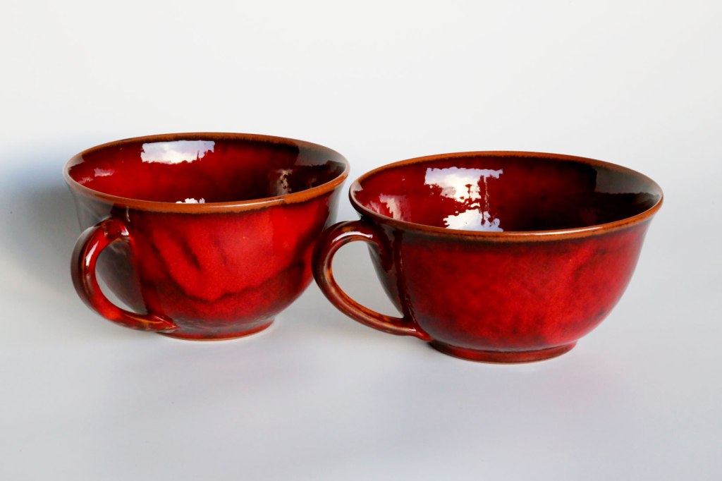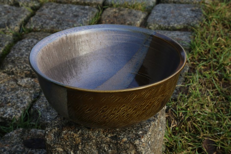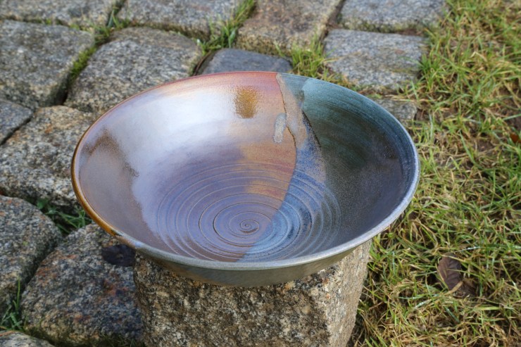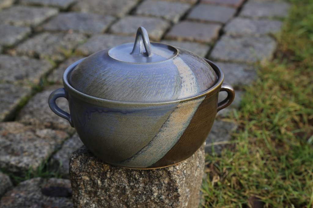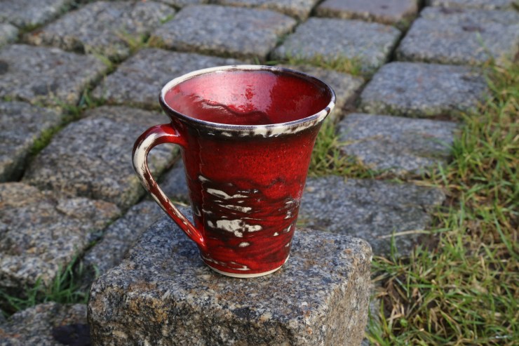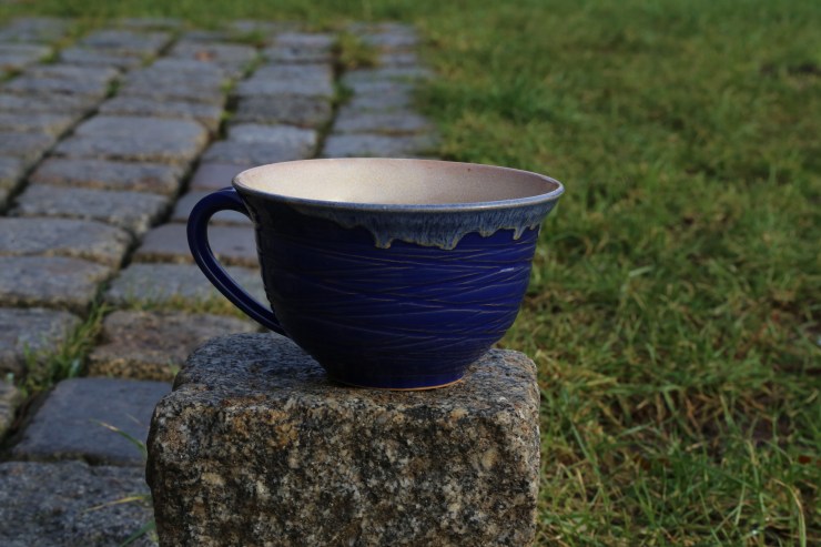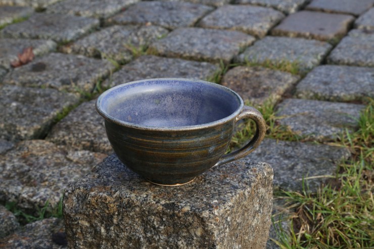 Lehmglasur besteht aus Lehm und Holzasche versetzt mit (in diesem Fall) Kupferoxid. So entsteht dieser metallische Effekt.Eine schöne Tasse kann für jeden eine tägliche Begleiterin sein.