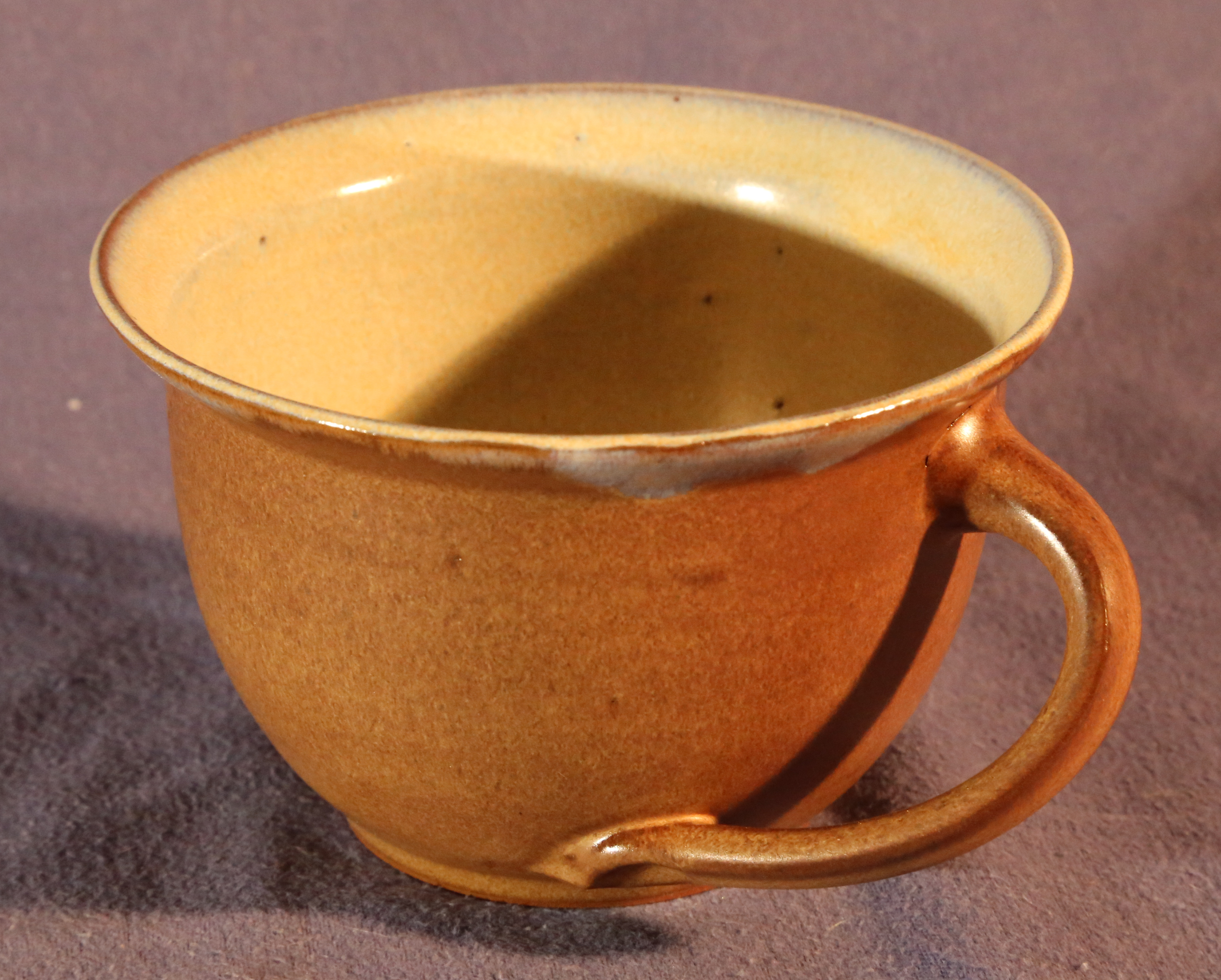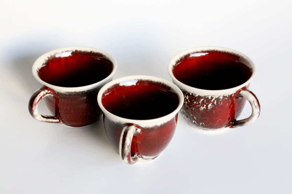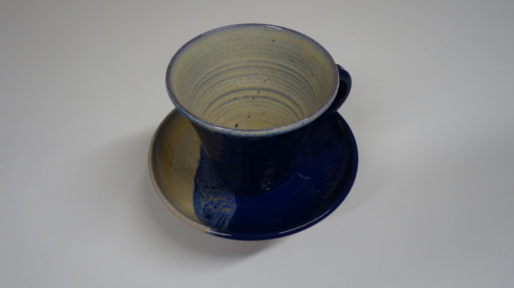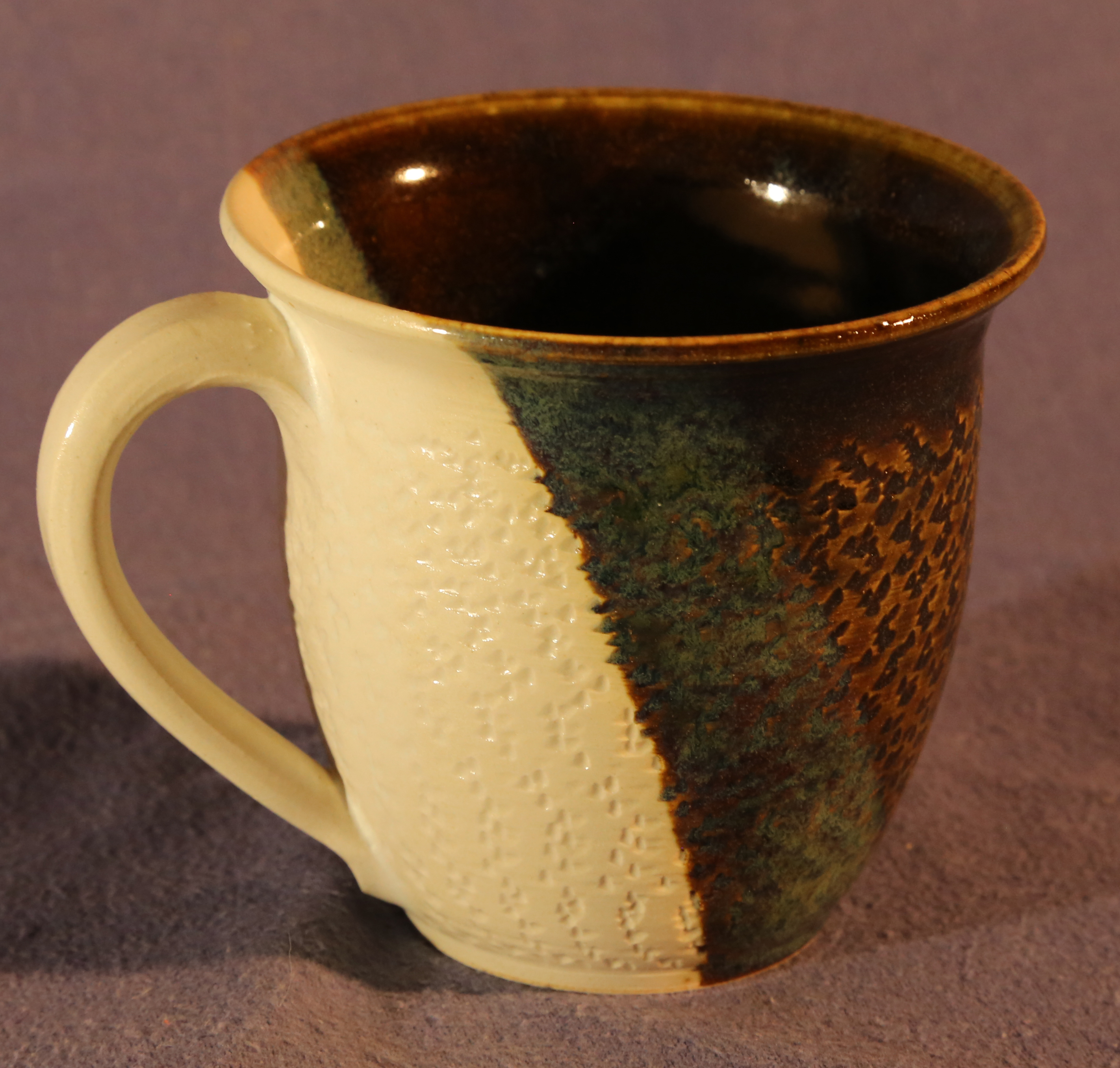 Lehmglasur besteht aus Lehm und Holzasche versetzt mit (in diesem Fall) Kupferoxid. So entsteht dieser metallische Effekt.Eine schöne Tasse kann für jeden eine tägliche Begleiterin sein.