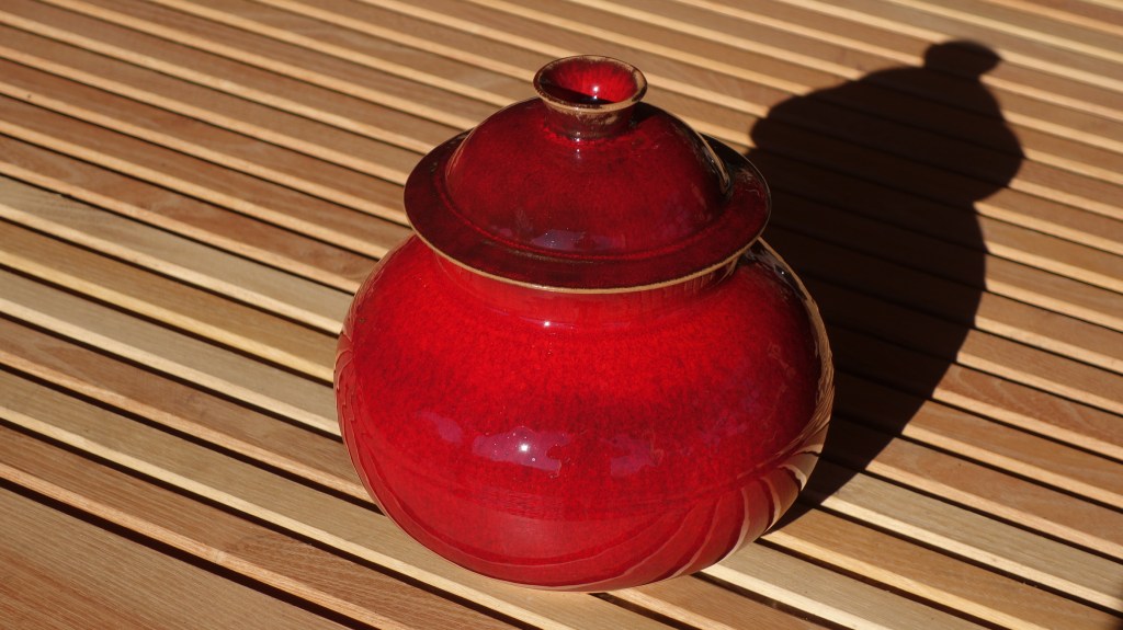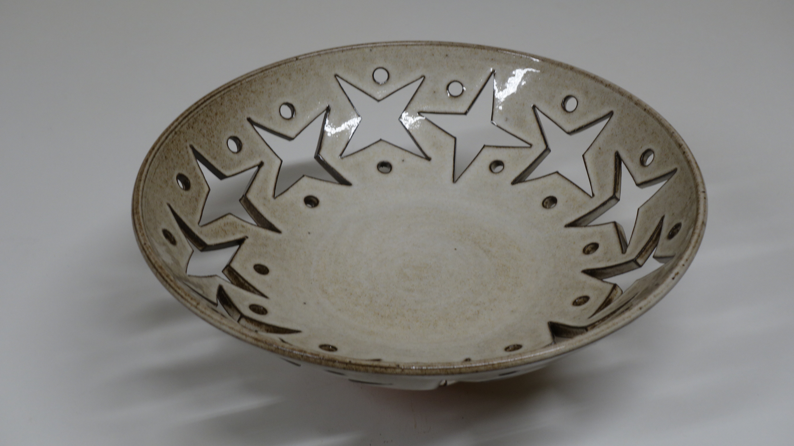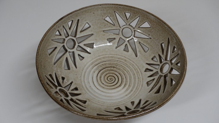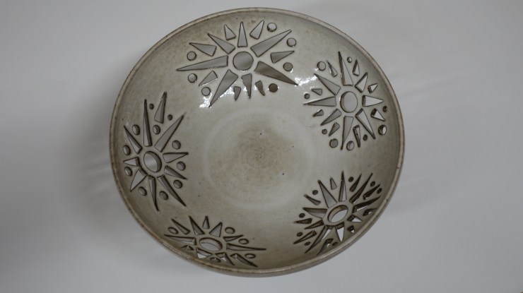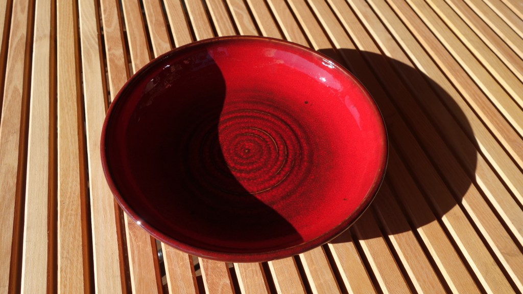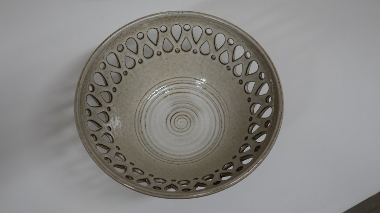 Die rote Glasur ist zickig aber nun gezähmt. Wunderschön!Schale mit Durchbrüchen-24cm